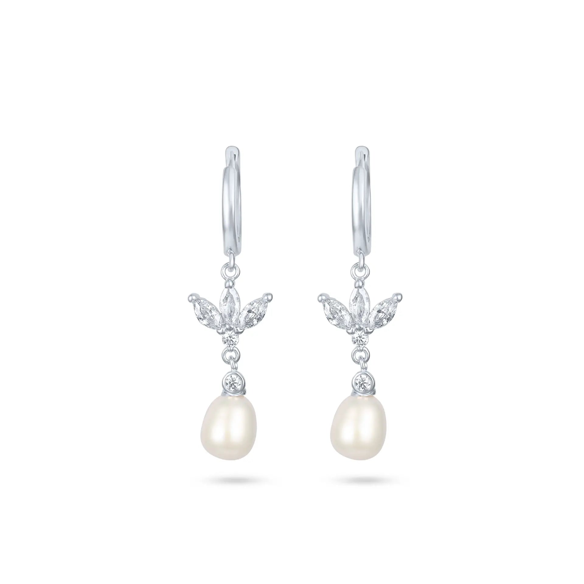 ✨ השלימי את הלוק שלך עם עגילים מרהיבים : עגילי הכסף התלויים הללו משלבים פנינים טבעיות עם אבני זרקון נוצצות, מה שמעניק לך מראה יוקרתי ומעודן לכל אירוע.