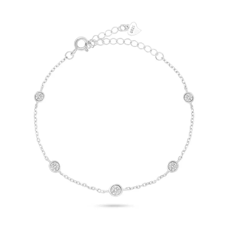 צמיד כסף 925 משובץ חמישה זרקונים עגולים קטנים , בעיצוב סימטרי ומלא אור.