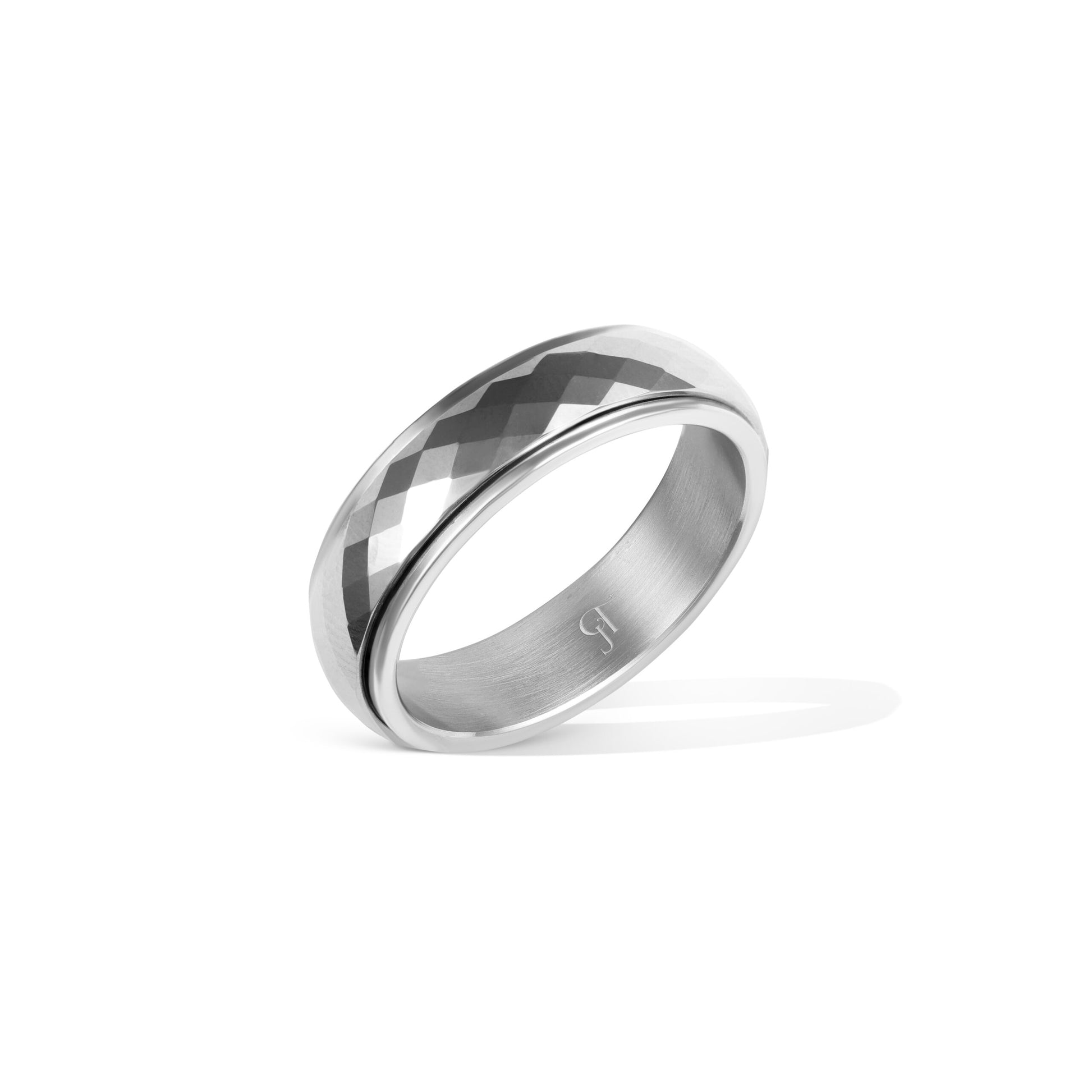 טבעת לגברחתוכי לייזר בצורת מעוניינים מסתובבת בצבע כסף