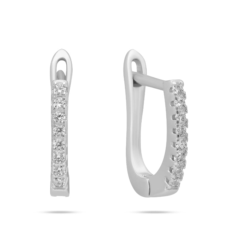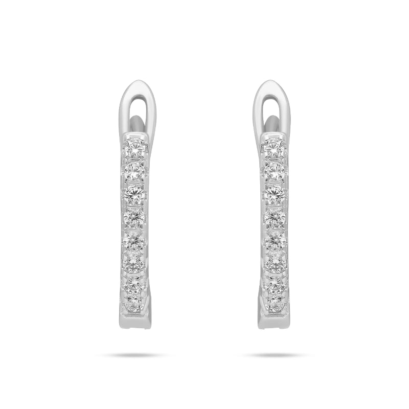 עגילי חישוק אובלי קלאסיים מכסף, משובצים בשורת אבני זירקון נוצצות לכל אורכם. העיצוב האלגנטי והנצחי הופך אותם לתכשיט מושלם לכל לוק - יומיומי או ערב חגיגי.