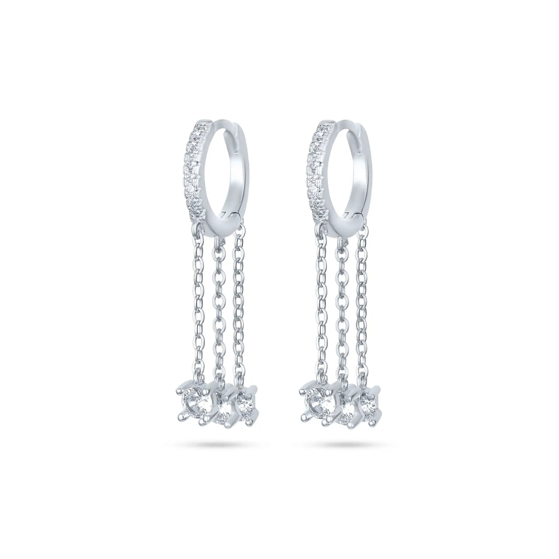 עגיל כסף חישוק משובץ עם שרשראות נופלות