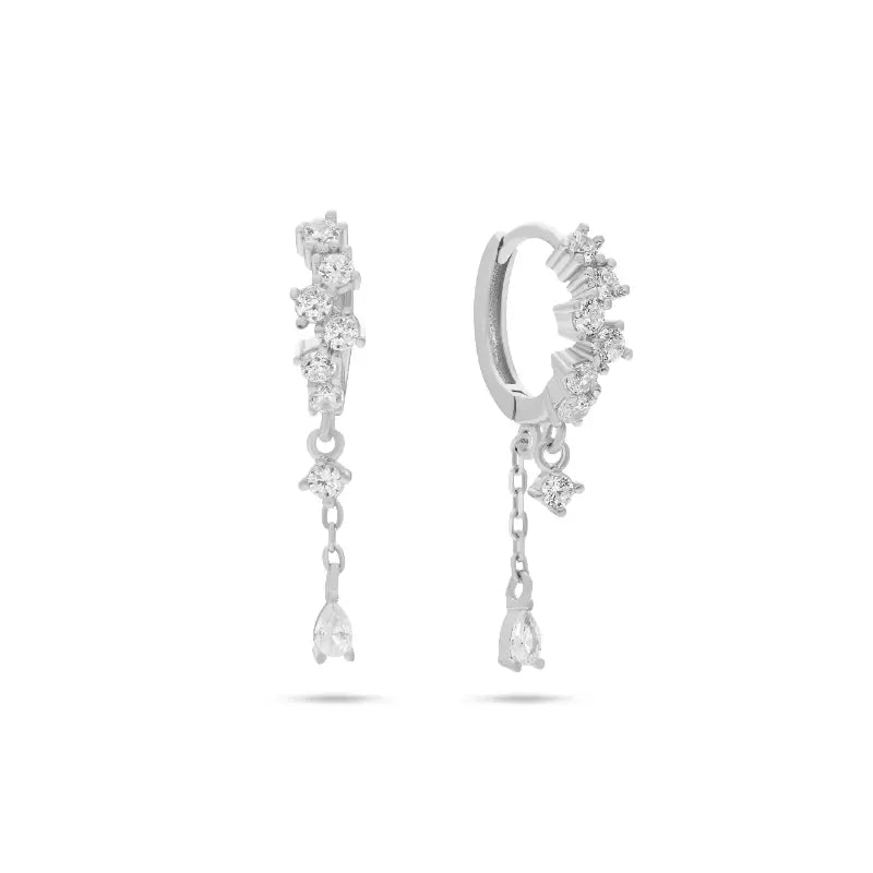 עגילי חישוק שרשרת כסף 925 משובצי זירקונים עם תליון עדין בצורת טיפה.