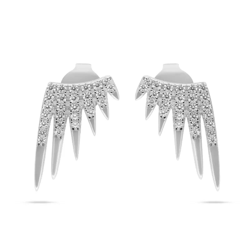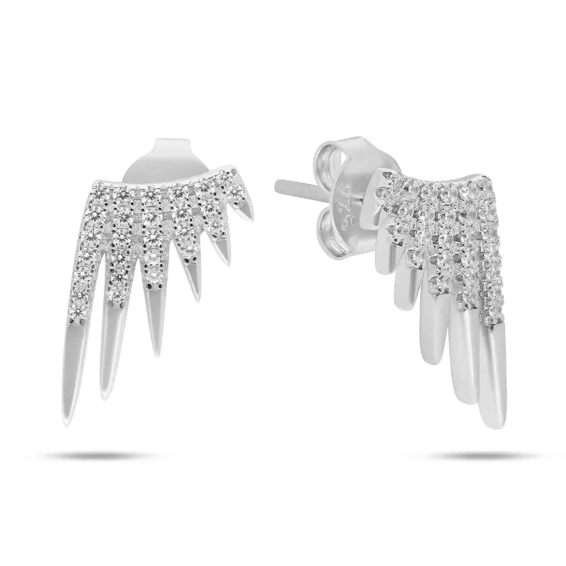עגילי כסף 925 בעיצוב כנפי מלאך משובצות זירקונים נוצצים.