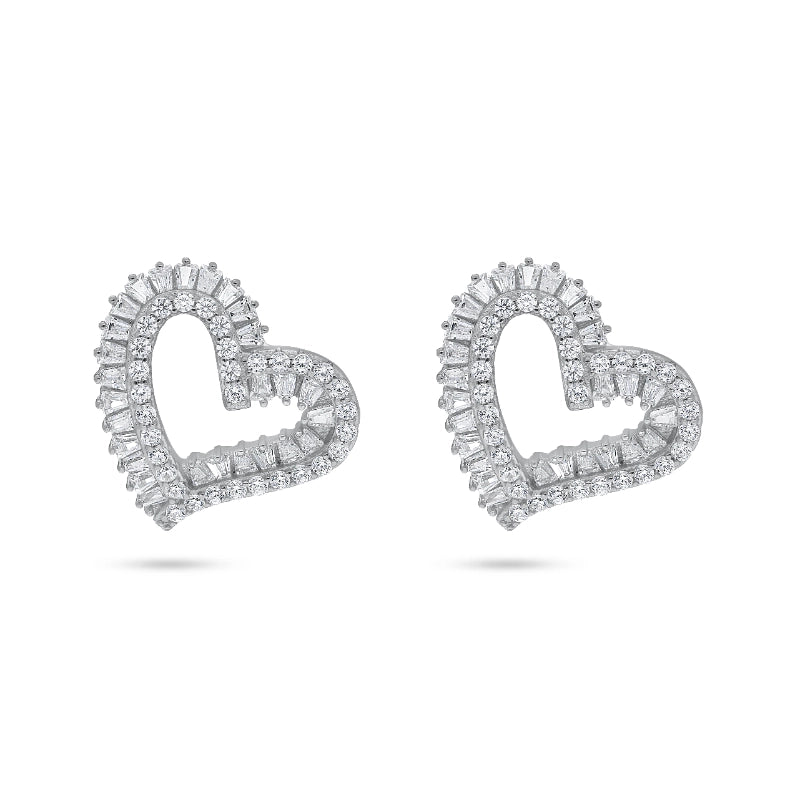 עגילי כסף בעיצוב לב מנצנץ