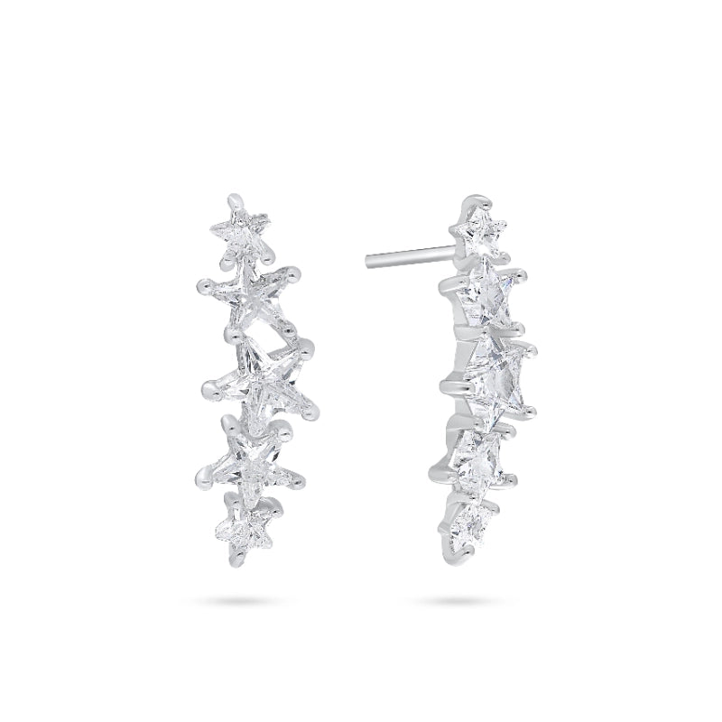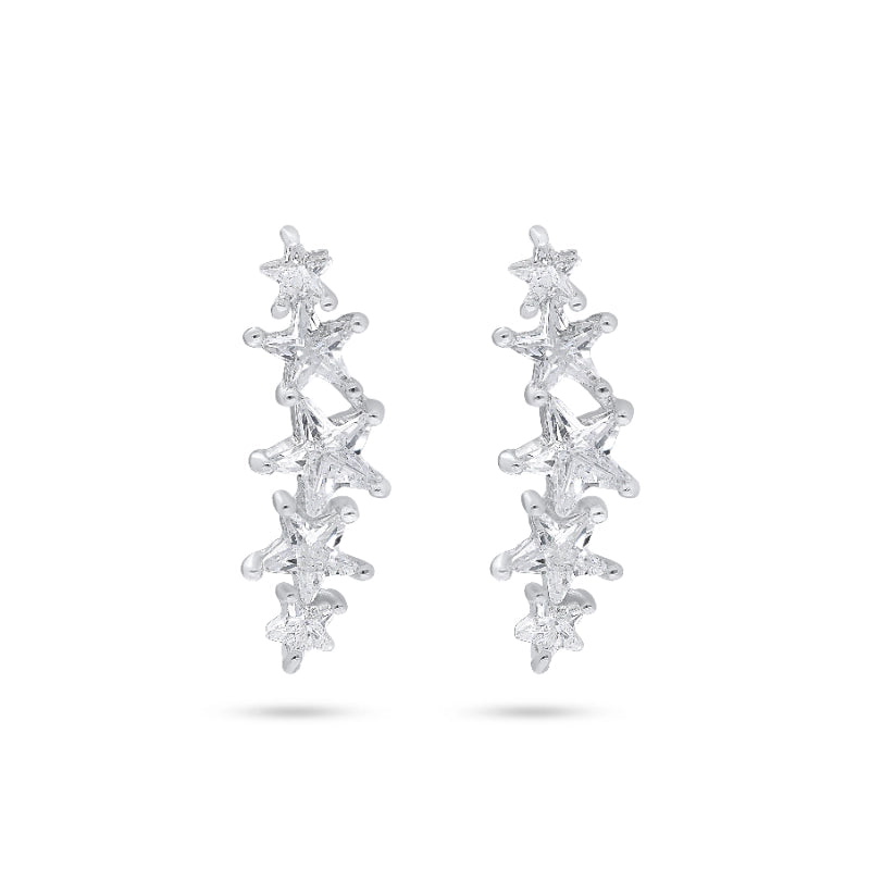 עגילים מדהימים בצורת כוכבים נוצצים המשתלבים אחד מתחת לשני - מעניקים מראה אוורירי וייחודי עם קריצה לכוכבים בשמי הלילה. העיצוב המודרני יחד עם ברק האבנים הקורצות מביאים שילוב מנצח של אלגנטיות, שובבות וסטייל עדכני.