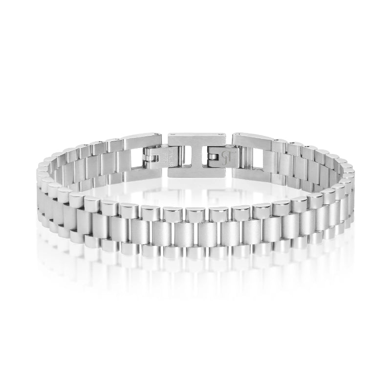 צמיד גברים יוקרתי בעיצוב קלאסי ונקי, המזכיר רצועת שעון יוקרתית.