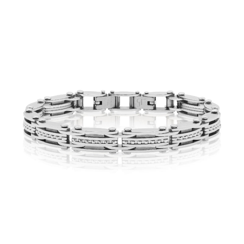 צמיד גברי בעיצוב אלגנטי ומרשים, עשוי משילוב איכותי של קרמיקה ופלדת אל חלד (סטיל).