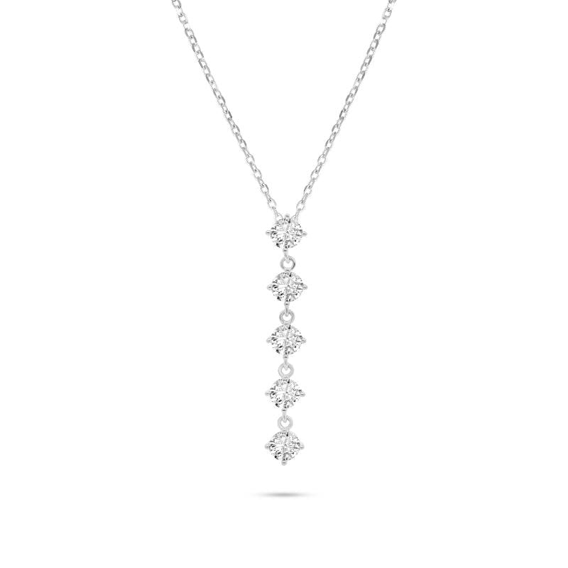 שרשרת תליון מדורג בעיצוב אנכי אלגנטי ✨, משובצת בחמש אבניזרקון עגולות היורדות בקו עדין ומדויק מן השרשרת כלפי מטה.
